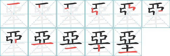 - 问:写"堊"字第10笔是什么笔画?答:竖【