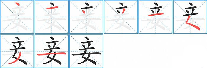 - 问:写"妾"字第7笔是什么笔画?答:撇【