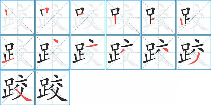 - 问:写"跤"字第12笔是什么笔画?答:撇【