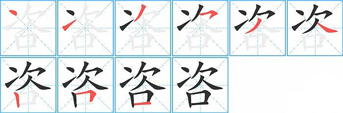 - 问:写"咨"字第5笔是什么笔画?答:撇【