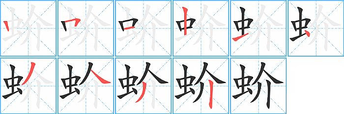 - 问:写"蚧"字第9笔是什么笔画?答:撇【