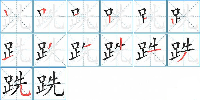 - 问:写"跣"字第12笔是什么笔画?答:撇【