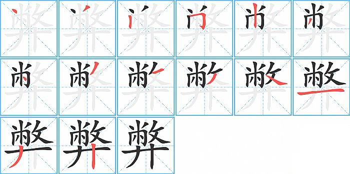 - 问:写"弊"字第13笔是什么笔画?答:撇【