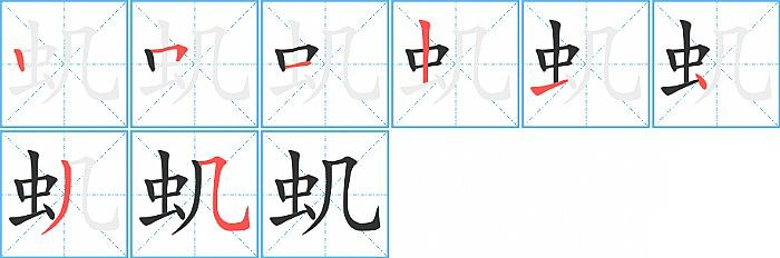 竖、横折、横、竖、横、点、撇、横折弯钩/横斜钩