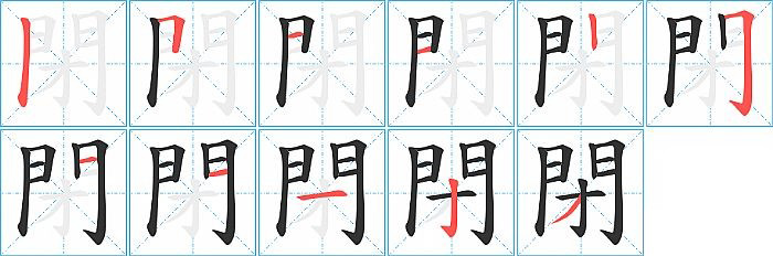 - 问:写"閉"字第10笔是什么笔画?答:竖钩【