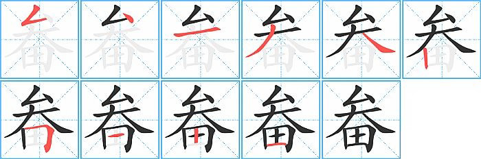 - 问:写"畚"字第10笔是什么笔画?答:横【