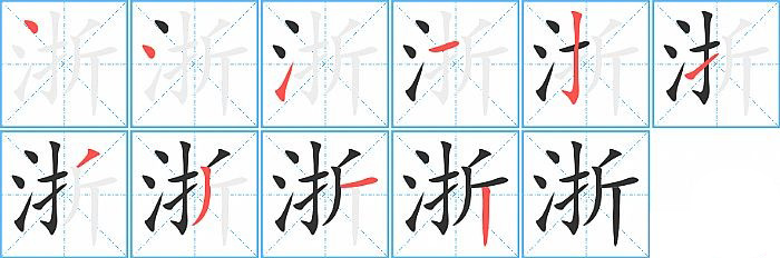 - 问:写"浙"字第10笔是什么笔画?答:竖【