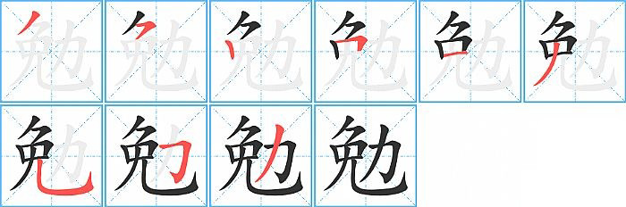 - 问:写"勉"字第9笔是什么笔画?答:撇【