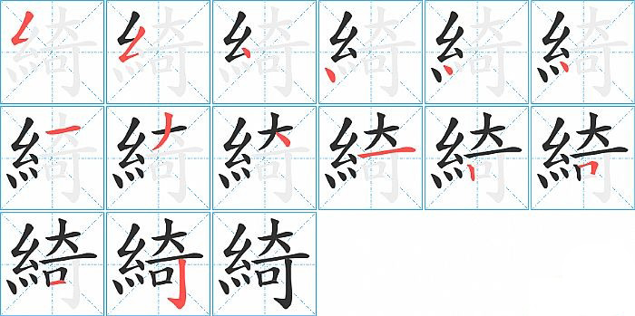 - 问:写"綺"字第14笔是什么笔画?答:竖钩【