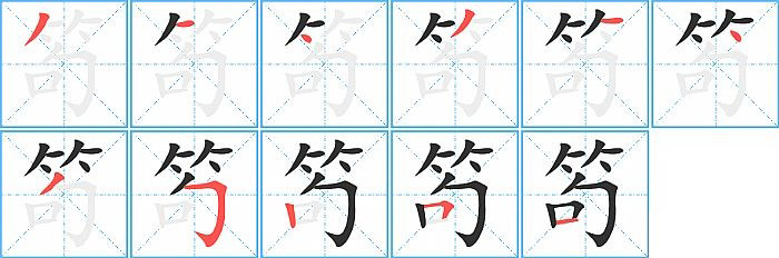 - 问:写"笱"字第9笔是什么笔画?答:竖【