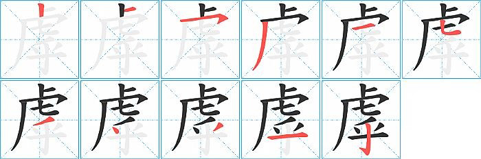 - 问:写"虖"字第10笔是什么笔画?答:横【