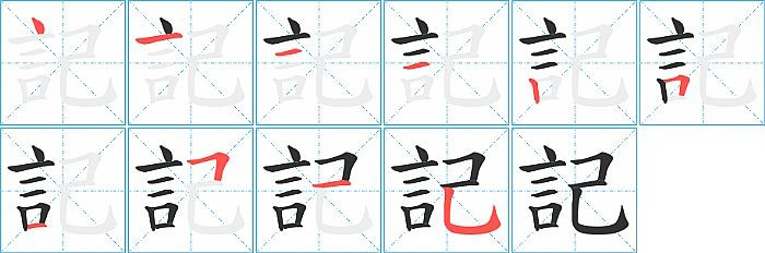 - 问:写"記"字第10笔是什么笔画?答:竖弯钩【