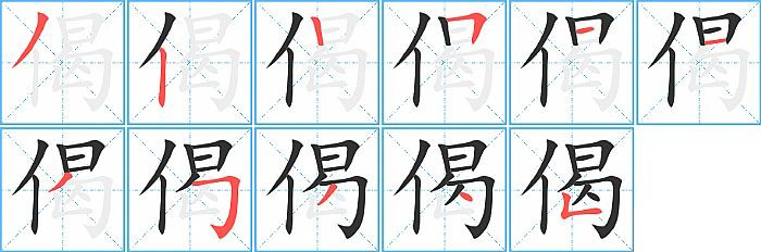 - 问:写"偈"字第11笔是什么笔画?答:竖折【