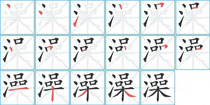 - 问:写"澡"字第14笔是什么笔画?答:竖【