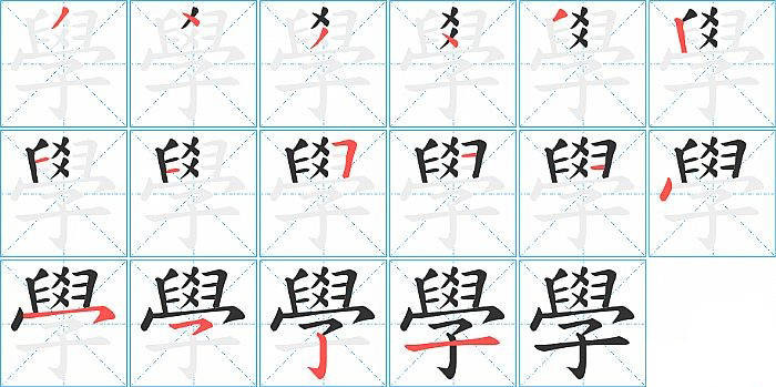 - 问:写"學"字第16笔是什么笔画?答:横【