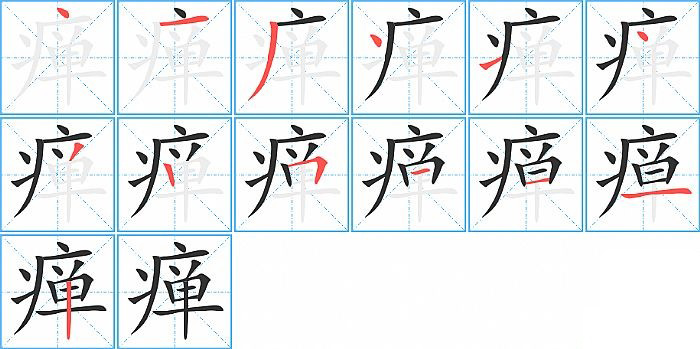 - 问:写"瘅"字第12笔是什么笔画?答:横【