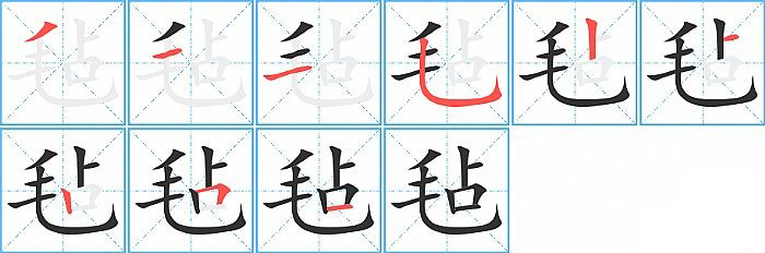 - 问:写"毡"字第9笔是什么笔画?答:横【