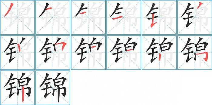 - 问:写"锦"字第12笔是什么笔画?答:横折钩【