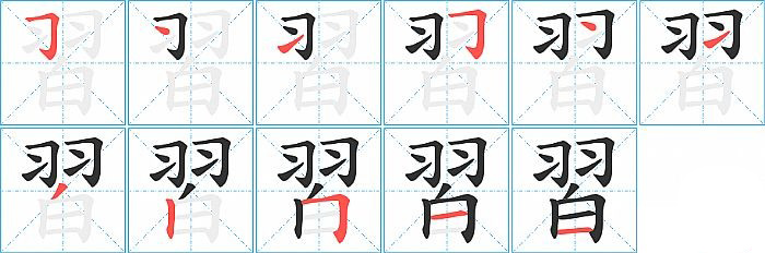 - 问:写"習"字第10笔是什么笔画?答:横【