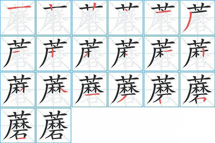 - 问:写"蘑"字第16笔是什么笔画?答:撇【