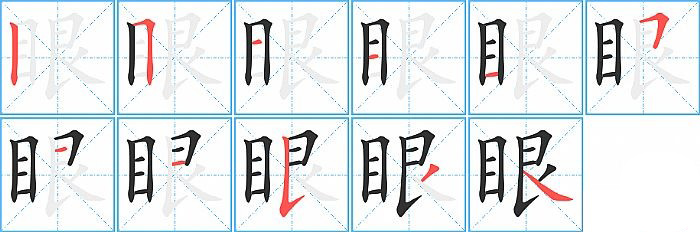 - 问:写"眼"字第10笔是什么笔画?答:撇【