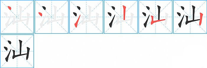 汕的笔画为6画, 笔顺为