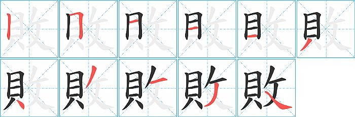 - 问:写"敗"字第10笔是什么笔画?答:撇【