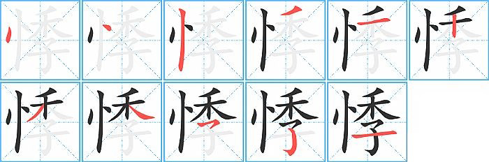 - 问:写"悸"字第11笔是什么笔画?答:横【