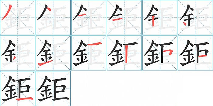 - 问:写"鉅"字第12笔是什么笔画?答:竖折【
