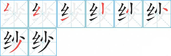 - 问:写"纱"字第7笔是什么笔画?答:撇【