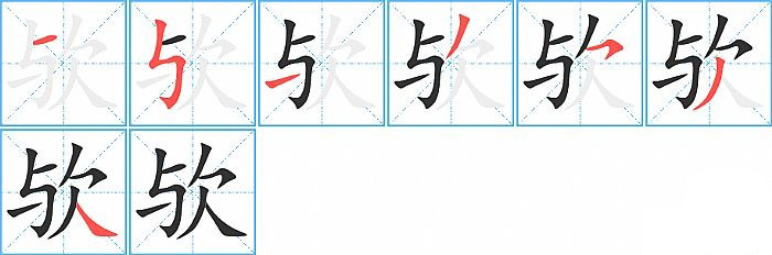 - 问:写"欤"字第7笔是什么笔画?答:捺【