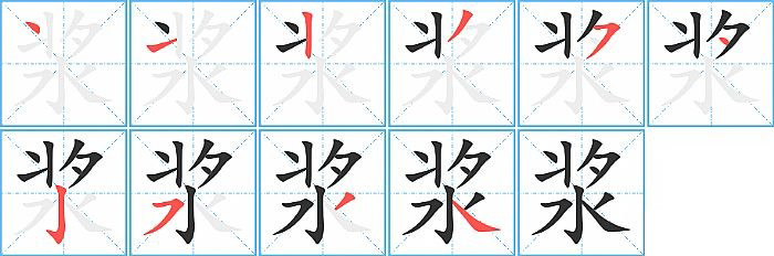 - 问:写"浆"字第10笔是什么笔画?答:捺【
