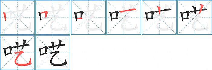 竖、横折、横、横、竖、竖、横折弯钩/横斜钩