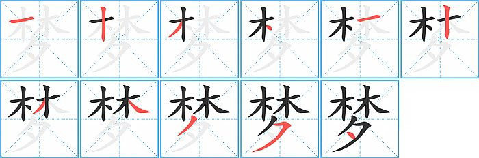 - 问:写"梦"字第10笔是什么笔画?答:横撇【