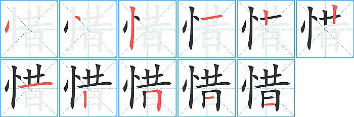 - 问:写"惜"字第10笔是什么笔画?答:横【