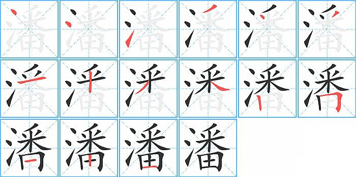 - 问:写"潘"字第9笔是什么笔画?答:撇【