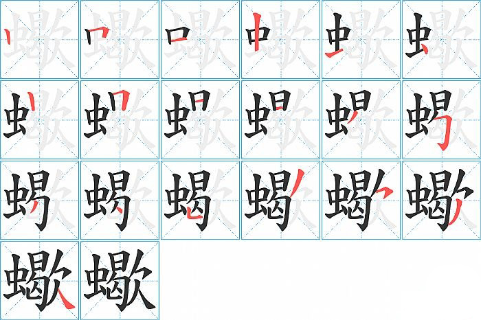 - 问:写"蠍"字第19笔是什么笔画?答:捺【
