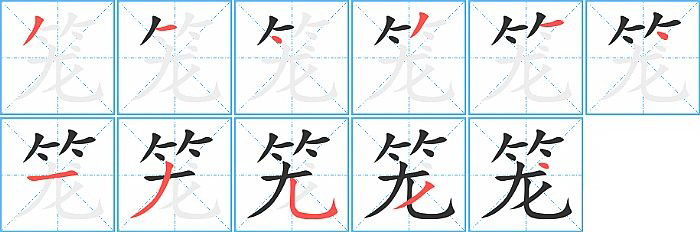 - 问:写"笼"字第10笔是什么笔画?答:撇【