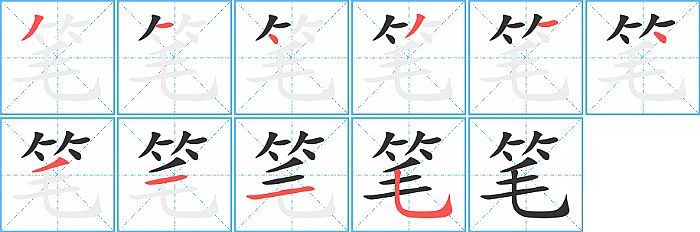 - 问:写"笔"字第10笔是什么笔画?答:竖弯钩【