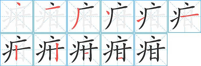 - 问:写"疳"字第10笔是什么笔画?答:横【