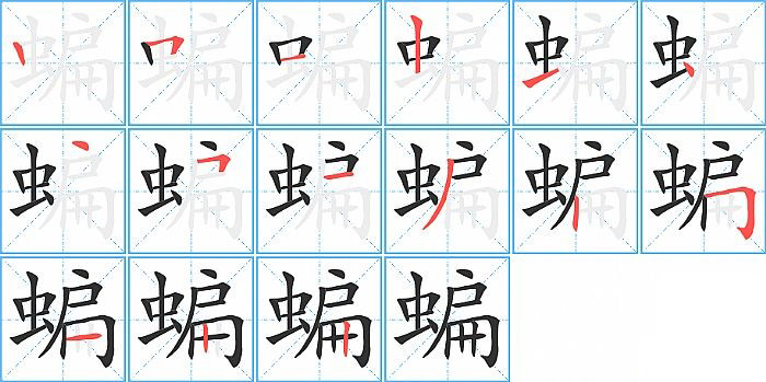 - 问:写"蝙"字第13笔是什么笔画?答:横【