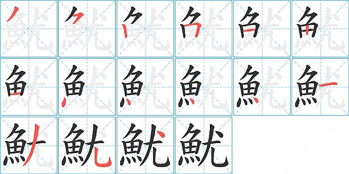 - 问:写"魷"字第12笔是什么笔画?答:横【