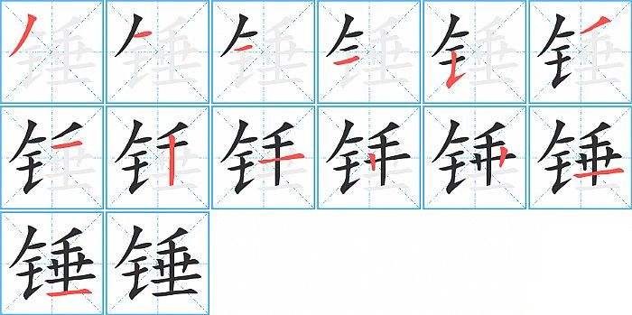 - 问:写"锤"字第12笔是什么笔画?答:横【