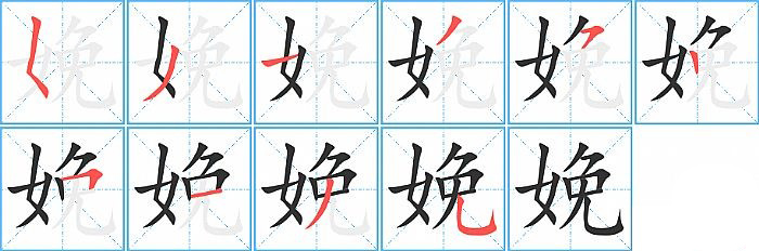 - 问:写"娩"字第9笔是什么笔画?答:撇【