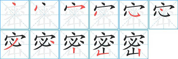 - 问:写"密"字第10笔是什么笔画?答:竖折【