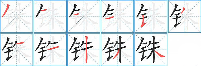 - 问:写"铢"字第10笔是什么笔画?答:撇【