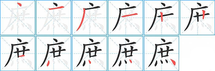 - 问:写"庶"字第7笔是什么笔画?答:横【