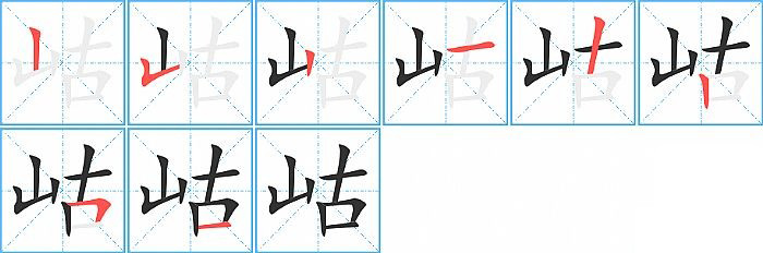 岵的笔画为8画, 笔顺为