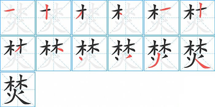 - 问:写"焚"字第11笔是什么笔画?答:撇【