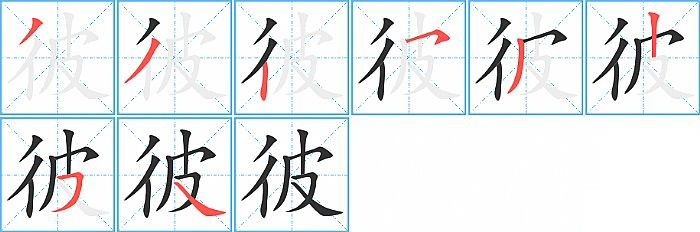 - 问:写"彼"字第5笔是什么笔画?答:撇【
